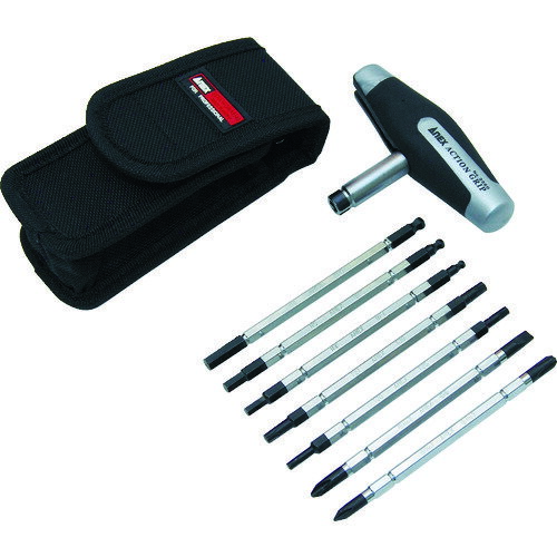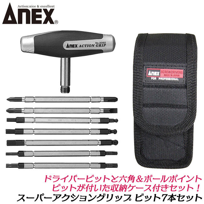 ANEX スーパーアクショングリップドライバー ビット7本付セット 専用収納ケース付 T型ドライバー ストレート形状 差替えドライバー プラス マイナス へクスローブ 六角 ボールポイント 整備 No.3350 兼古製作所