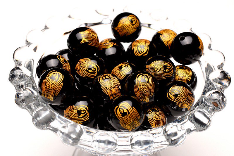 アマビエ金彫 オニキス 12mm 3粒セット ビーズ アクセサリー _T603-12
