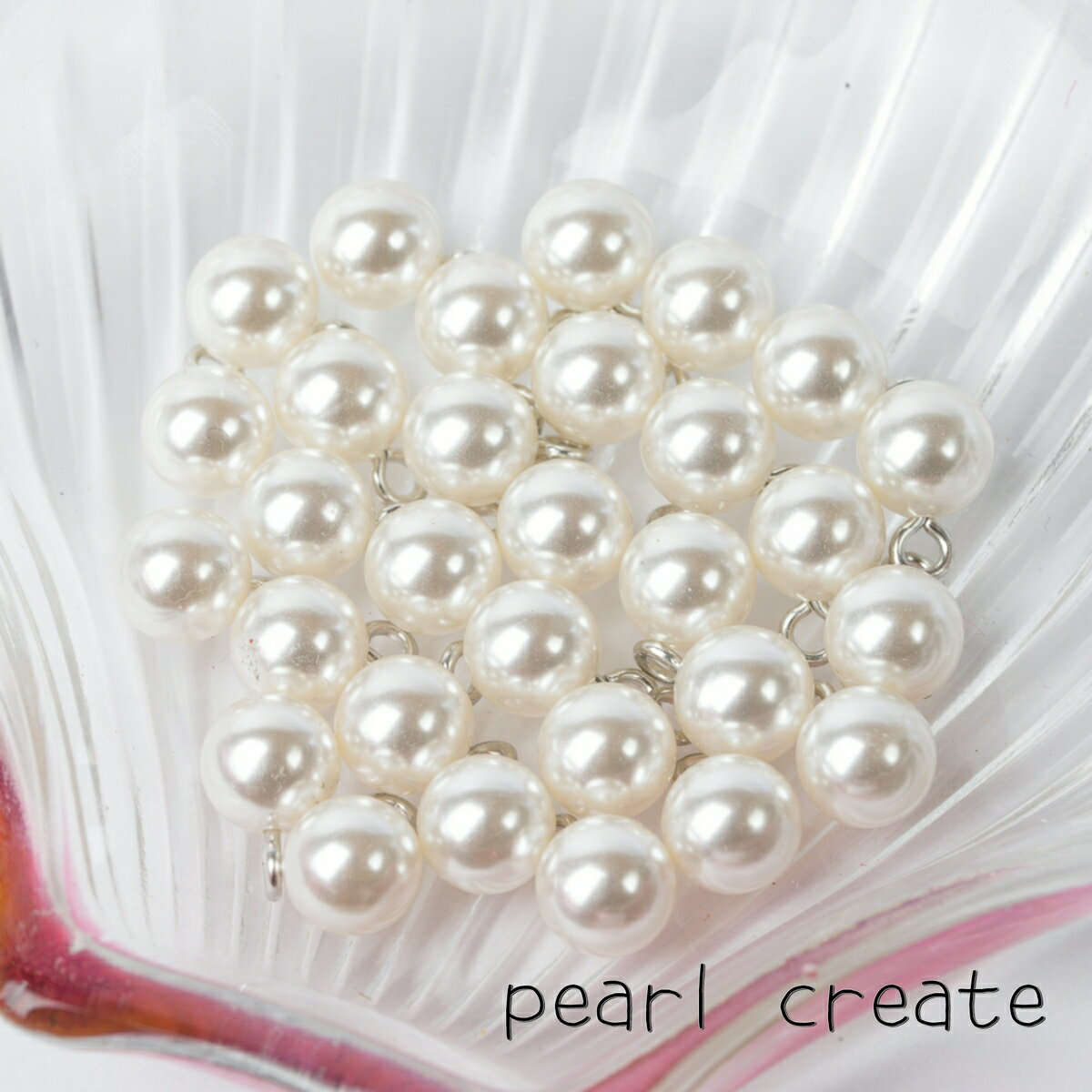 【国内検品済み】丸カン付き パールビーズ P-057 ナチュラルホワイト 8mm 10個 穴なし ハンドメイド