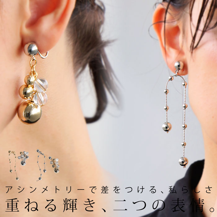 ▼▼▼ アシンメトリーで差をつける。 重ねる輝き『アシンメトリージュエルイヤリング』 動くたびに視線を奪う、大胆なアシンメトリーデザインが魅力のイヤリング。 個性的なビジューを施し、耳元を華やかに彩ってくれるこなれアイテム。 ≪DETAIL≫ ・トレンドライクな左右非対称のデザイン。 ・キラキラと輝くクリアなビーズ。 ・動くたびに揺れる華やかなチェーン。 ≪FABRIC≫ [アレルギー対応のニッケルフリー] 金属アレルギーの原因のトップとされるのがニッケル。 だけど加工がしやすいから多くのアクセサリーに使用されています。 ニッケルフリーとはニッケルという金属などで引き起こるアレルギーを 「防ぐことを目的」にニッケルをほぼ含まずにニッケルフリーメッキを使用しているもの。 ニッケルによる金属アレルギーをお持ちの方でも安心してお使い頂きやすくなっています! ※こちらの商品は衛生品の為、不良品以外の返品・交換は不可となります。 ■ピアス品番aj-01813こちらよりご確認お願いいたします。 ※近日発売予定のアイテムは、画像が表示されていない、またリンクが繋がらない場合が御座います。今しばらくお待ち下さい。 サイズ チェーンモチーフ クリアモチーフ 全長(最短/最長) 約5/約9 約3.5 幅 - 約2 重さ 約2.5g 約5.5g ※サイズは目安にご参考下さいませ。※サイズには多少の個体差がある場合がございます。ご了承くださいませ。※低アレルギー素材です。 素材 真鍮 アクリル CCB ※【商品・配送について】ご購入前にこちらの注意事項をご確認ください。 Please check the notes for this item and check this shipping note before you buy. 【検索ワード】アシンメトリーイヤリング イヤリング レディース ねじ式 アレルギー対応 ニッケルフリー 金属アレルギー 低アレルギー シルバー ゴールド アシンメトリー アシメ 揺れる ボール 丸 ビジュー 個性派 上品 大ぶり アクセサリー アクセ ジュエリー 両耳用 普段使い フォーマル 結婚式 二次会 パーティー オケージョン antiqua アンティカ 大人 おしゃれ 10代 20代 30代 40代 50代 60代 春 夏 秋 冬 オールシーズン お洒落 カジュアル かわいい かっこいい あんてぃか