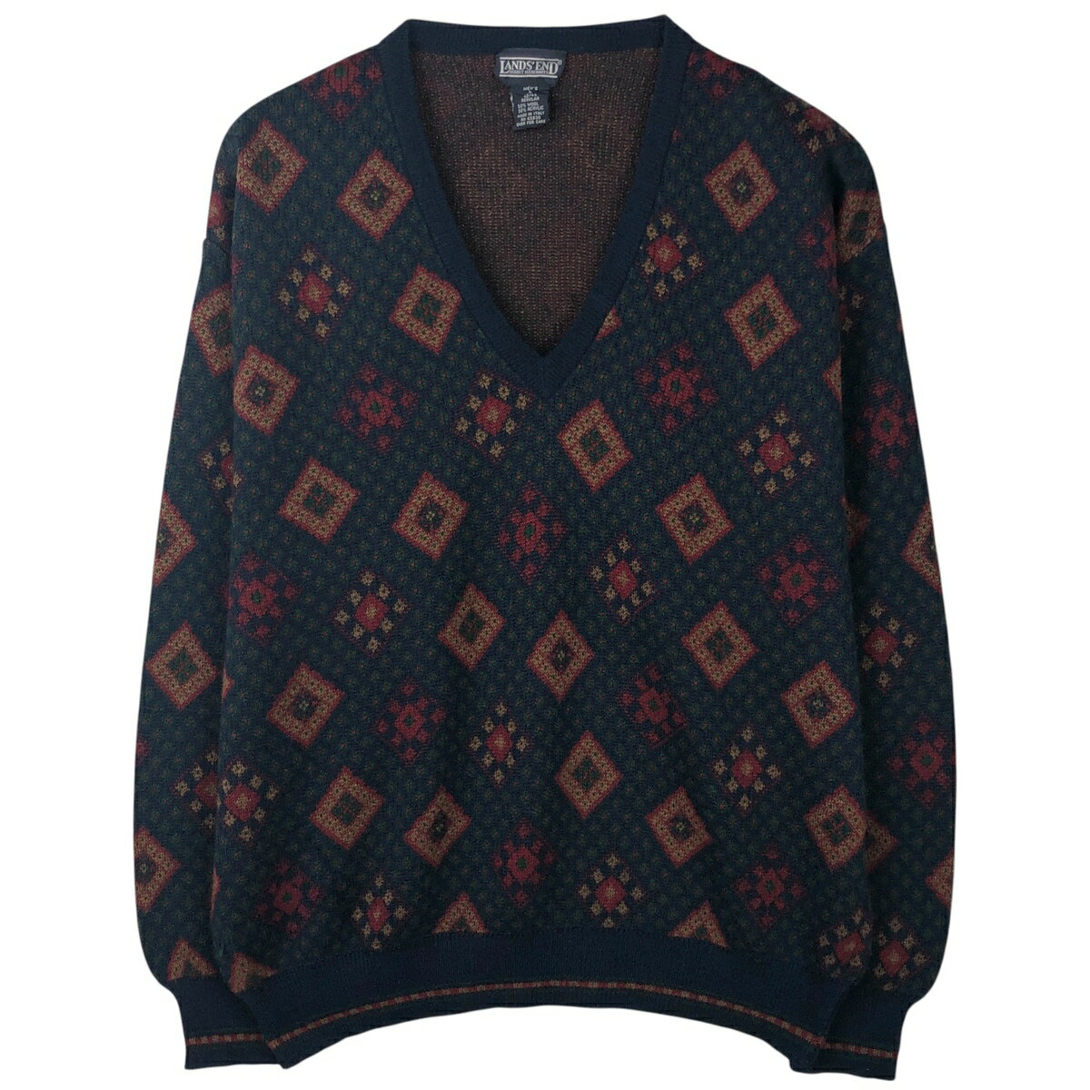 古着 80~90'S ランズエンド LAND'S END 総柄 ダイヤ柄 Vネック アクリル×ウールニットセーター イタリア製 メンズL相当 ヴィンテージ /eaa611696 【中古】 【260213】 【GR-NV】