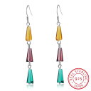 【送料無料】 ピアス レインボー クリスタル シルバー ロング 揺れる レディース クリエイティブ カラフル タッセル ファッション 925 スタンプ カラー ジュエリー 虹 ファン シェイプ ダングル