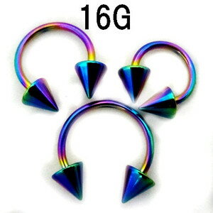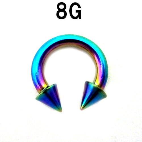 激安価格の1280円、レインボーカラーの二オビュームコーティングサーキュラーバーベルコーン8G★ 内径:12mm コーンの長さ:6mm激安価格の1280円、レインボーカラーの二オビュームコーティングサーキュラーバーベルコーン8G★ 内径:12mm コーンの長さ:6mm