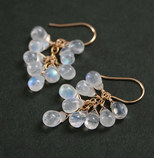 素材 14KGF ムーンストーン 約7×5ミリ前後 フックから下の長さ 約21ミリ カットが入っていない つるんとした雫型ムーンストーンの房が揺れるフリンジピアスです。 透明感のあるホワイトカラーに 角度によってブルーや レインボーのシラーが見られます。(わずかなクラックはあります) ※ ピアス着用画像のトルソーは やや小さめの作りになっていますので ピアスが大きめに見えます。必ず実寸をご確認ください。 ※ イヤリングへの変更は こちら をご覧ください。 ※ ピアスパーツの変更は こちら をご覧ください。 ※ 素材の説明、返品についてなど こちら に記載しております。 必ずご確認ください。 ※ ラッピングについては こちら をご覧ください。