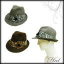 中折れ帽子/ストローハット/ソフトハット/秋冬・ファー・アニマル・レオパード・ヒョウ柄・グレー・ブラウン
