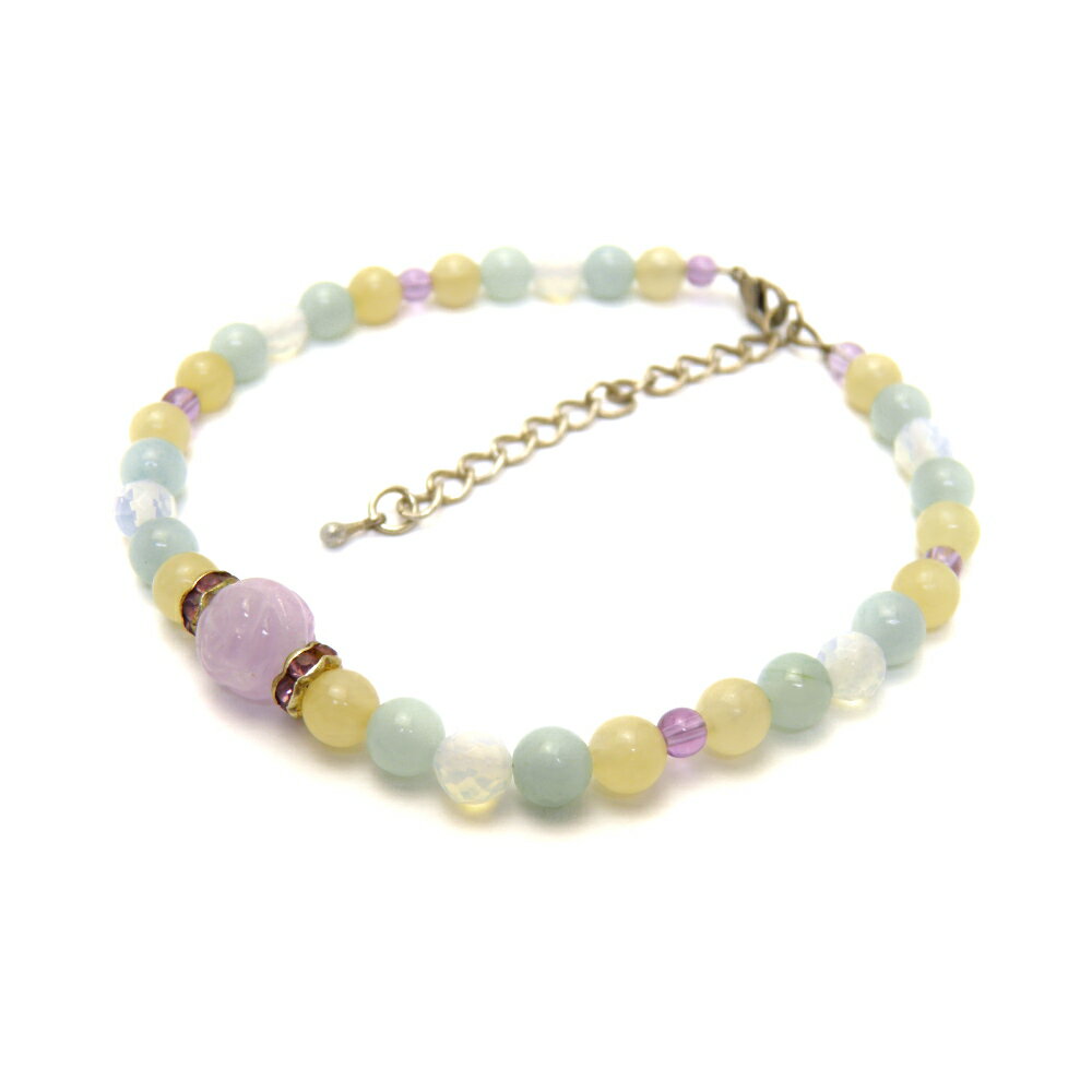 【アンクレット】 ラベンダーアメジスト薔薇モチーフ&アマゾナイト・オーロラクォーツ・アラゴナイト プチギフト 転勤 退職 お礼 母の日 敬老の日 クリスマス ギフト / 天然石、パワーストーンの専門店インペリアルオーラ オシャレ 可愛い プレゼント ギフト 贈り物
