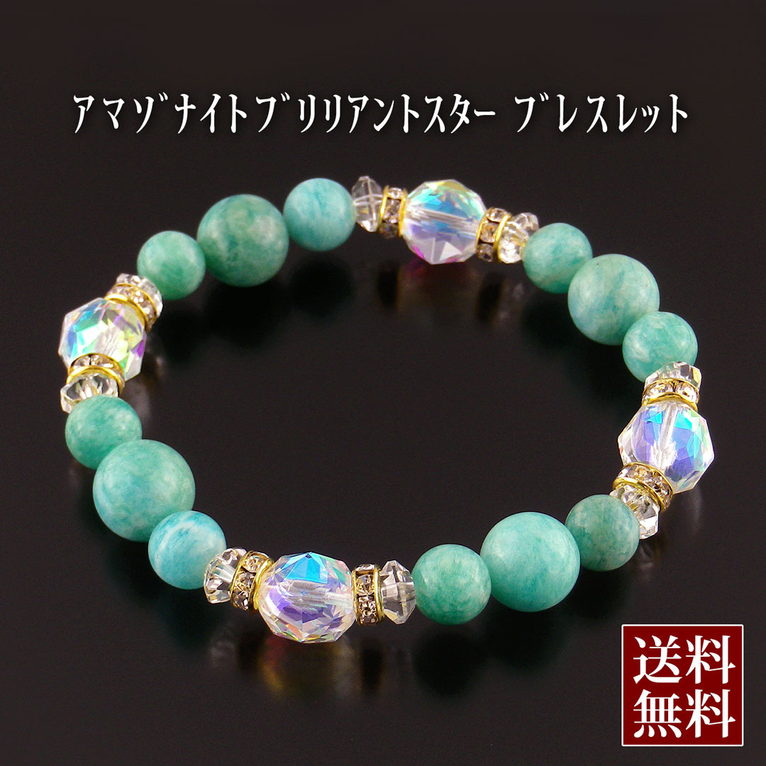 アマゾナイト・ブリリアントスターブレス 白水晶 アマゾナイト パワーストーン ブレスレット メンズ レディース 効果 ハンドメイド 浄化 種類 意味 アクセサリー クリスタル 天然石