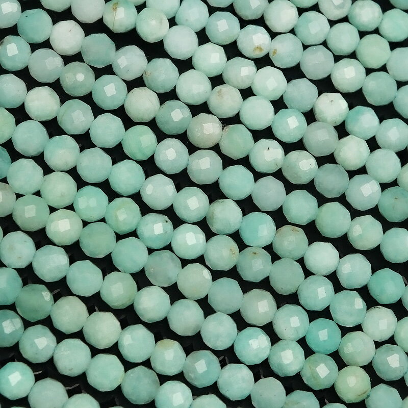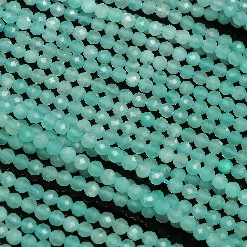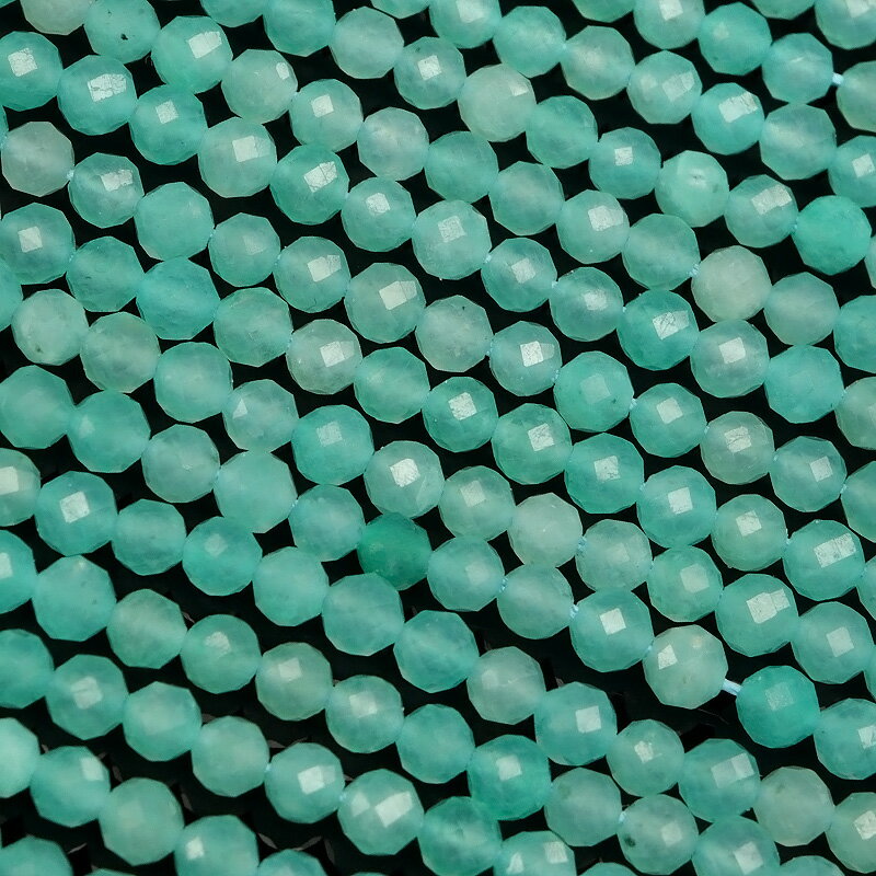 アマゾナイト 面カット 丸玉 3mm[プレミアムカット]【1連販売】▽ ホープストーン 天河石 Amazonite ラウンドカット 極小ビース 連売り 天然石 ビーズ パワーストーン パーツ アクセサリー 素材 材料