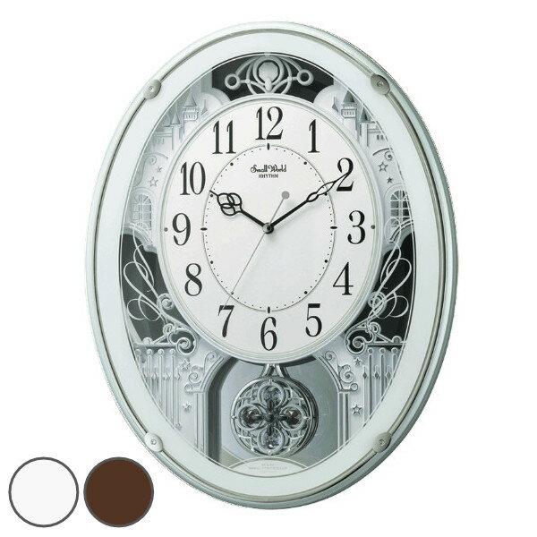 スモールワールドプラウド 茶メタリック色(白) 4MN523RH06 【条件付送料無料】 電波掛け時計 おしゃれな壁掛け電波時計 電波掛時計 電波からくり時計 電波アミュージング時計 時報メロディー リズム時計工業(RHYTHM シチズン系列)
