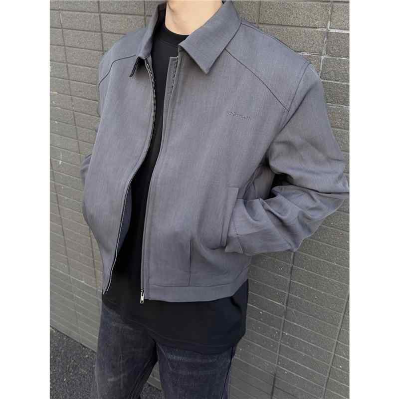 ジャケット 男性用 アメリカンレトロスタイル 肩パッド ゆったりめ ジップアップ ショート丈 ブルゾン 普段使い ポリエステル グレー ブラック 春秋