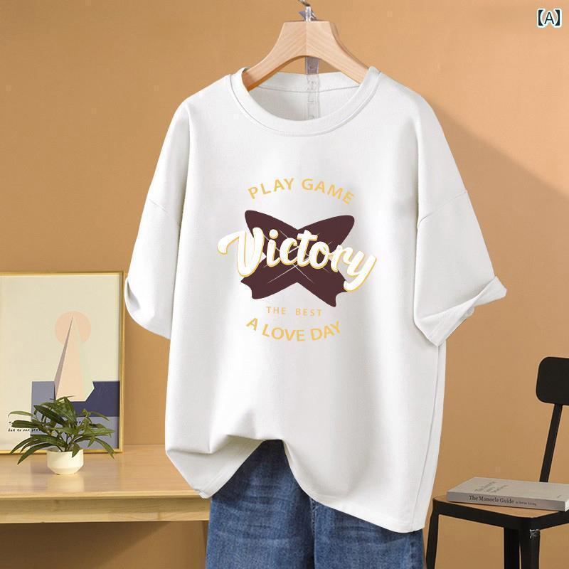 レディース Tシャツ ゆったり アメリカン レトロ スタイル 大きいサイズ ストレート ショルダー 半袖 Tシャツ 男女兼用 太め mm 綿 ゆったり カップル