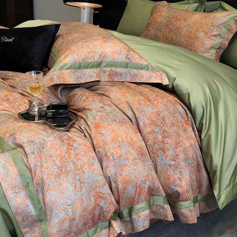 布団カバーセット 四季 純綿 全綿 コットン100% アメリカン レトロスタイル デジタルプリント グリーン 寝具 1.5m 1.8m 2.0m ベッド用