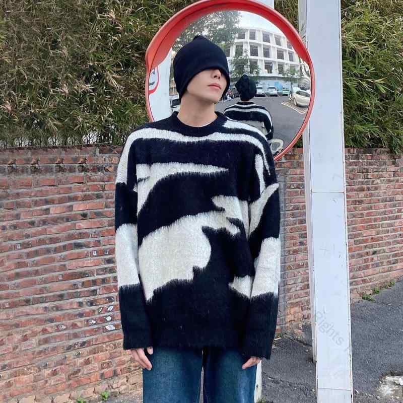 メンズファッション 春夏秋冬 かっこいい オシャレ モテる 男性用 紳士服 服 韓国 シンプル 大人 ストリート アメリカン レトロ スタイル 黒白 ラウンドネック セーター メンズ 秋冬 カジュアル カップル ニットセーター ジャケット おしゃれ着用 人気デザイン