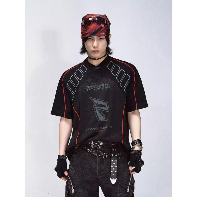 Tシャツ メンズ 男性用 速乾 メッシュ レーシング バイク モーターサイクル ウェア アメリカン レトロ スタイル ゆったり 半袖 トップス スポーティー カジュアル ブラック ホワイト ポリエステル