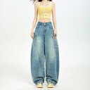 アメリカンレトロスタイル テンセル リヨセル素材 薄手 夏用 レディース 女性向け ハイウエスト カーブシルエット ゆったり ルーズフィット 小柄さん 低身長向け フルレングス フロア丈 デニムパンツ ジーンズ