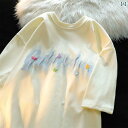 ファッション 服 オシャレ カワイイ シンプル 大カワイイ サイズ 婦服 シャツ 袖 スタッキング トップス Tシャツ ミルク イエロー 蝶 プリント 半袖 Tシャツ レディース 夏の な アメリカン レトロ スタイル シック カップル トップ