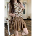 レディース アメリカン レトロ スタイル プリーツ ショート スカート ツーピース セット コーデ シンプル カジュアル おしゃれ