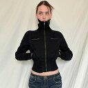 ジャケット レディース アメリカン レトロ スタイル ワークウェア ジッパー 立ち襟 アウター トップス 長袖 ポリエステル 黒 ブラック ストリート カジュアル