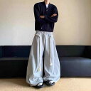 スウェットパンツ メンズ 男性用 ワイドレッグパンツ イージーパンツ 運動着 ルーズフィット ドローストリング ミディアムウエスト 無地 グレー アメリカンレトロ スタイル カジュアルパンツ リラックスウェア 普段使い 部屋着