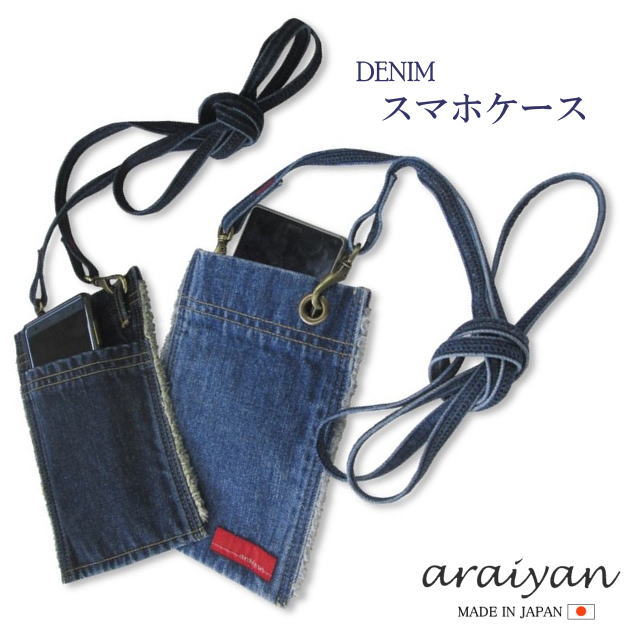 アライヤン フリンジスマホケース スマホショルダー 携帯ショルダー ショルダーバッグ ショルダーポーチ スマホ入れ 斜め掛け 洗濯可能 デニム地 小物入れ 取り外し可能 ジーンズ素材 デニムポーチ USED加工 araiyan 可愛い オシャレ