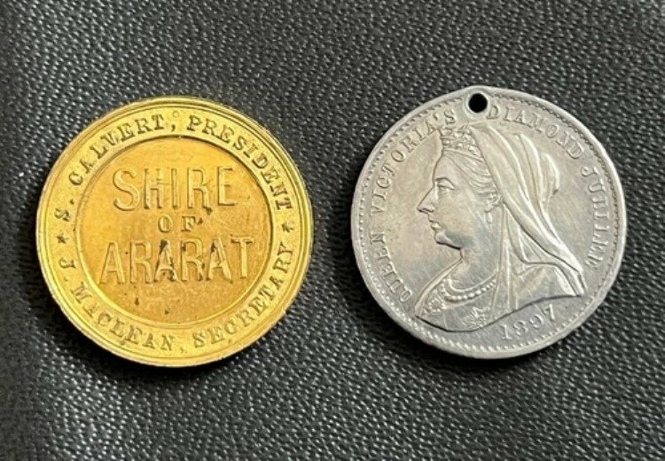 希少なオーストラリア アララト地方 1897年 ヴィクトリア女王 銀・金箔メダルセット