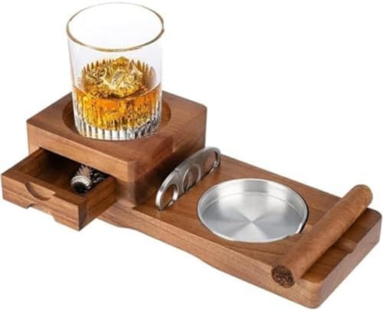 天然木製シガー灰皿セット おしゃれ トレイ付き ギフトにも最適 ウイスキートレイ リビング プレミアム アルミ灰皿付き バー 引き出し収納 高級 シガースロット 職人手仕上げ 多機能 テラス用