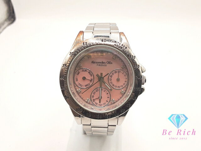 アレサンドラ オーラ ALESSANDRA OLLA マルチファンクション カレンダー レディース 腕時計 AO-282 ピンク シェル シルバー SS ブレス ロゴ アナログ クォーツ QZ ウォッチ トリプル デイデイト 【中古】【送料無料】 ht6114
