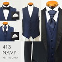 インナーアレンジに最適 タキシード小物3点セット 413Nネイビー ベスト、タイ、ポケットチーフ★レンタル4泊5日 往復送料無料★選べるユーロタイor 蝶ネクタイ 秋婚 結婚式 前撮り フォトウエディング