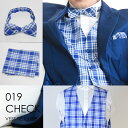 インナーアレンジに最適 タキシード小物3点セット 019CKチェックブルー ベスト、蝶ネクタイ、ポケットチーフ★レンタル4泊5日 往復送料無料★ 秋婚 結婚式 前撮り フォトウエディング