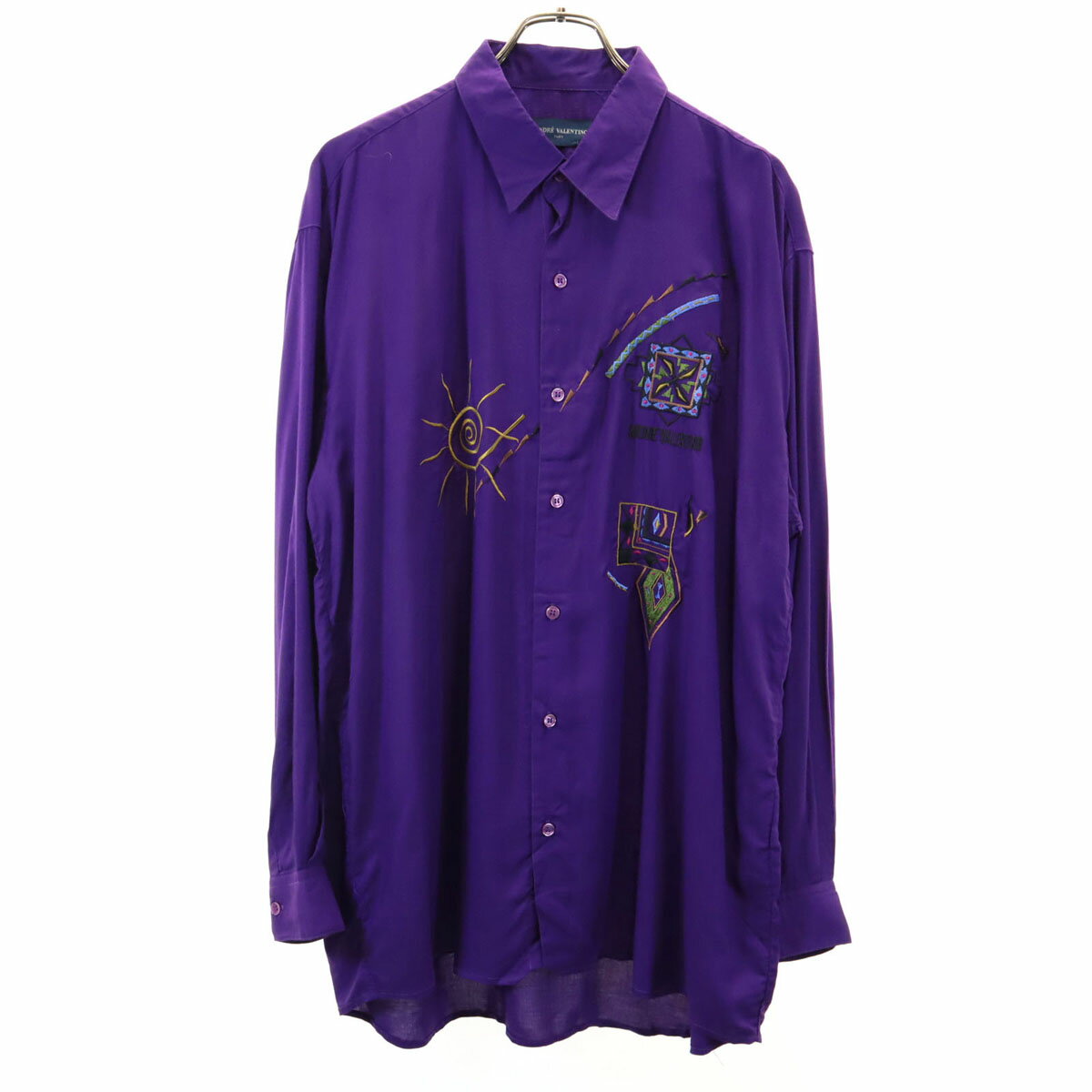 古着 ANDRE VALENTINO アンドレヴァレンチノ 長袖 刺繍 シャツ L パープル メンズ 【中古】
