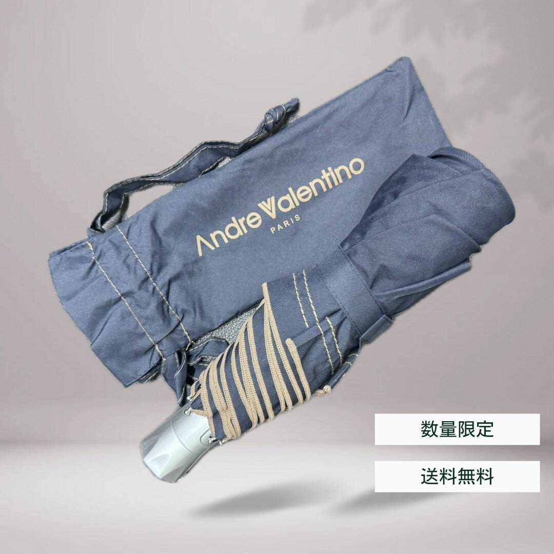 Andre Valentino(アンドレ・バレンチノ) 折りたたみ傘 53cm ネイビー強力撥水・指1本で自動開閉・コンパクト・日傘・レディース・ギフト・人気・おすすめ・送料無料