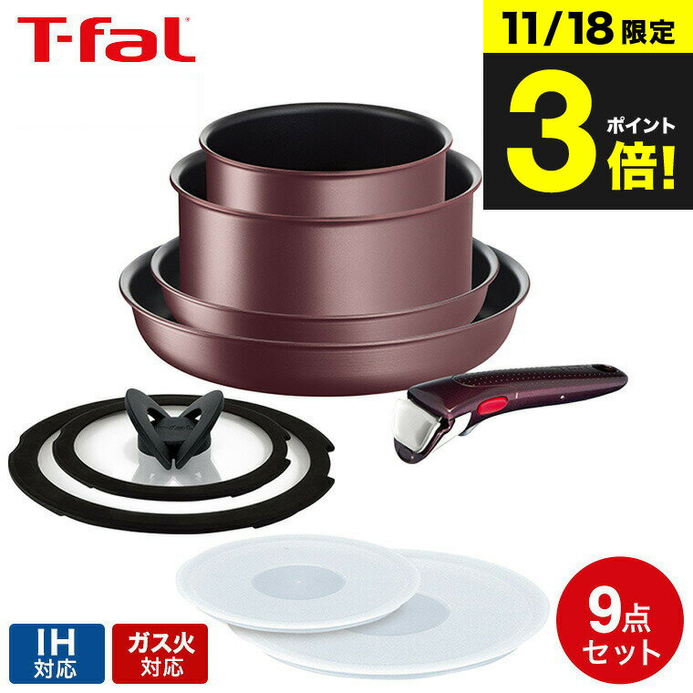 ティファール 【即納】 フライパン9点セット こびりつきにくいコーティング ガス火/IH両対応 着脱式取っ手 インジニオ・ネオ IHルージュ・アンリミテッド セット9 L38392