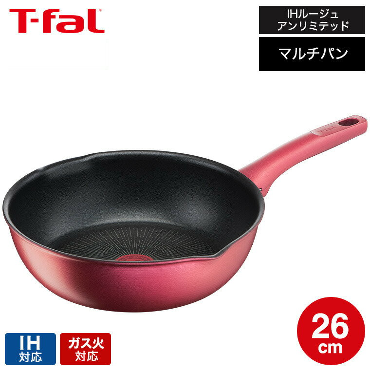 【LINEお友達で最大330円クーポン】ティファール T-fal IHルージュ・アンリミテッド マルチパン 26cm IH対応 ガス火対応 ih ガス 兼用 両用 G26277(直送) t-fal Tfal 取っ手つきフライパン