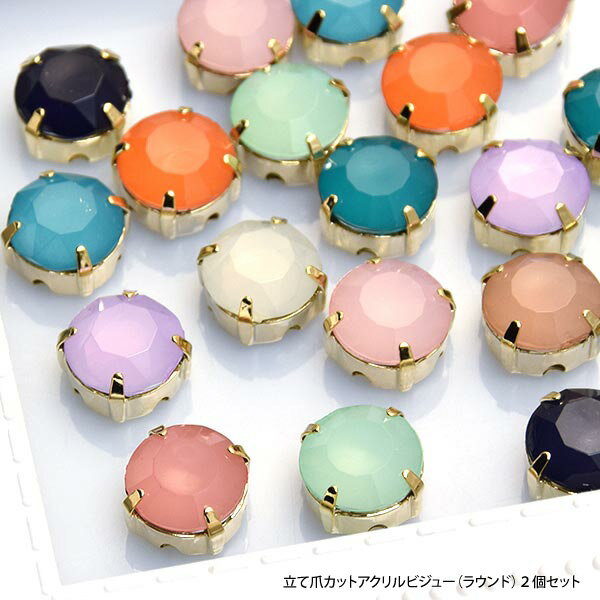 アクリル ビジュー パーツ 爪付き ラウンド 2個セット BLAZE アクセサリー パーツ 商用利用可能 ハンドメイド クラフト 手芸 手作り 資材 素材 材料 装飾 アレンジ リメイク シンプル おしゃれ かわいい ピアス イヤリング レッド イエロー ブルー パープル ホワイト 約12mm