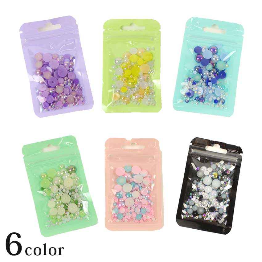 清原 デコパーツ パール ラインストーンミックス DW-09 レジン ネイル パープル イエロー ブルー グリーン ピンク ブラック | デコ パーツ ビーズ スイーツ 貼り付け おしゃれ かわいい ハンドメイド クラフト 簡単 推しカラー