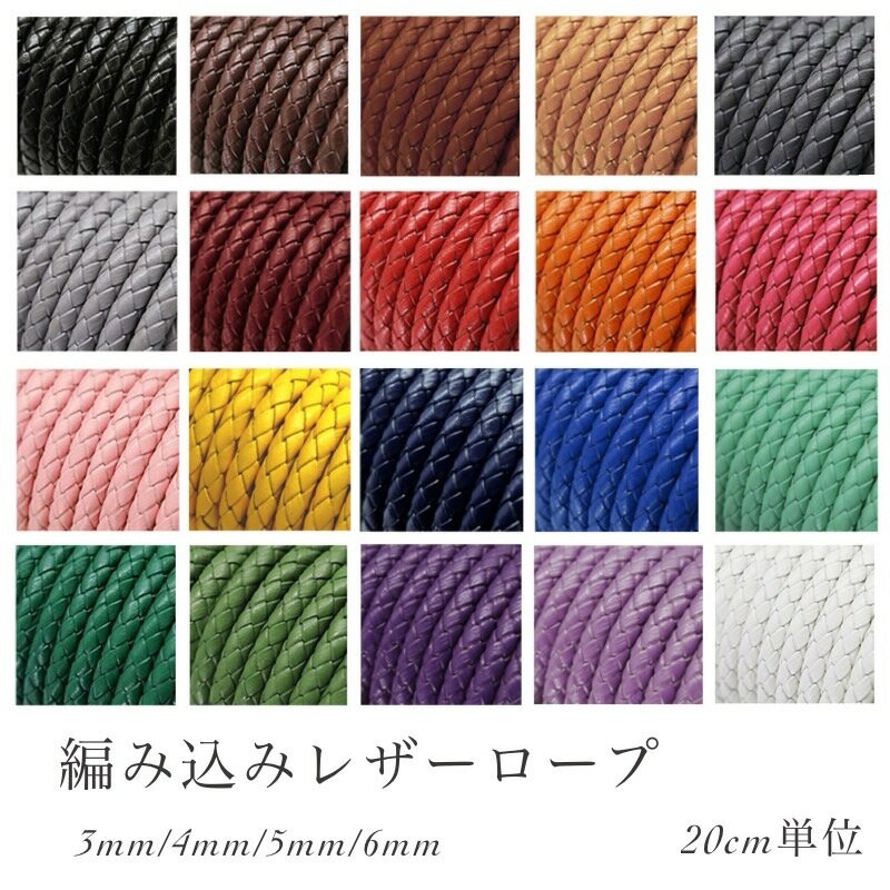 カラバリ豊富 20色 本革 レザー 本物の牛革!DIY用 牛革 3mm 4mm 5mm 6mm 編み込みレザー 20cm単位 黒 ハンドメイド パーツ ブラウン ベージュ グレー ボルドー レッド オレンジ ピンク イエロー ネイビー ブルー ミント グリーン オリーブ パープル ラベンダー ホワイト