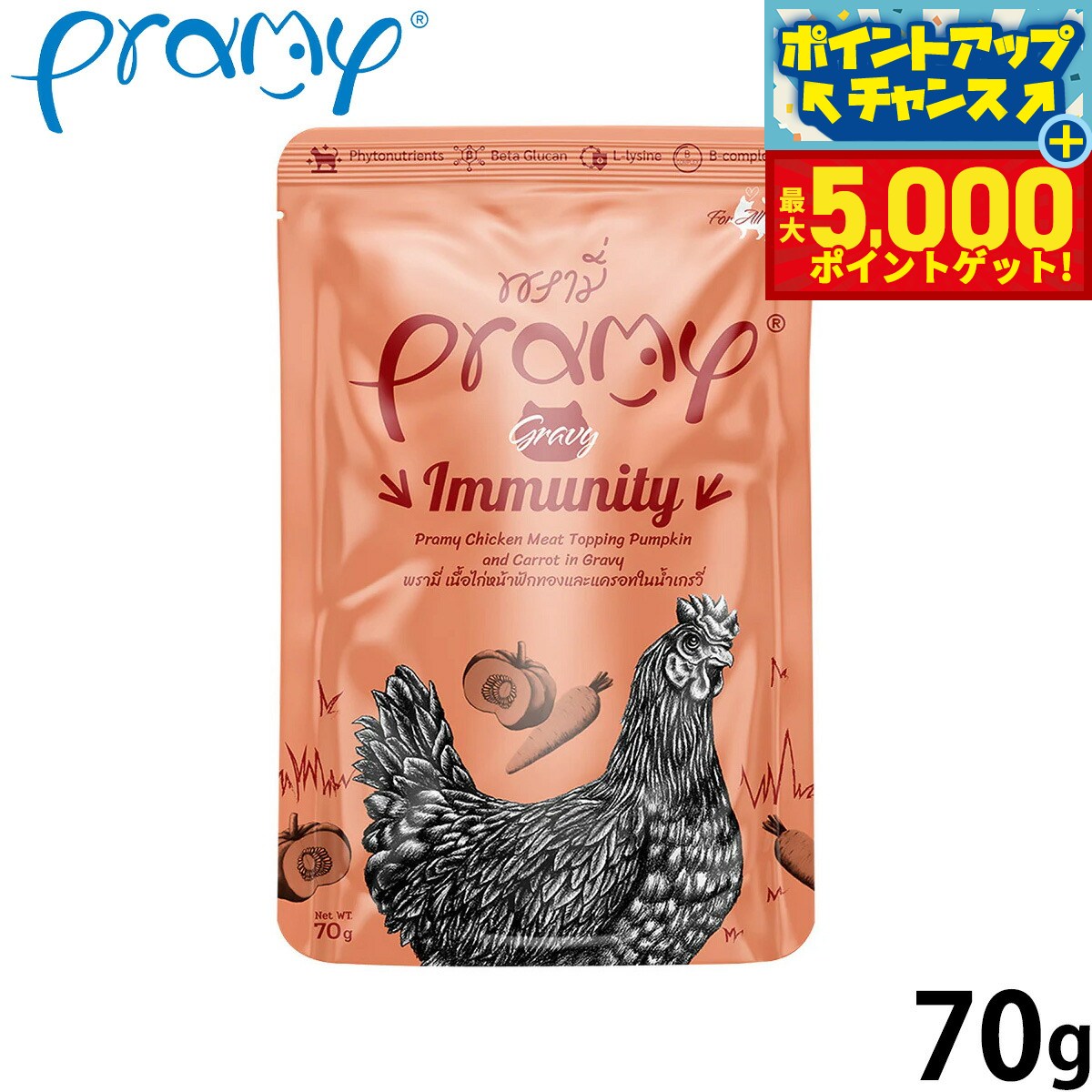 プラミー Pramy キャットフード ウェットフード チキン ニンジン カボチャ グレイビー イミュニティー 70g 無添加 グレインフリー 穀物不使用 パウチ 一般食