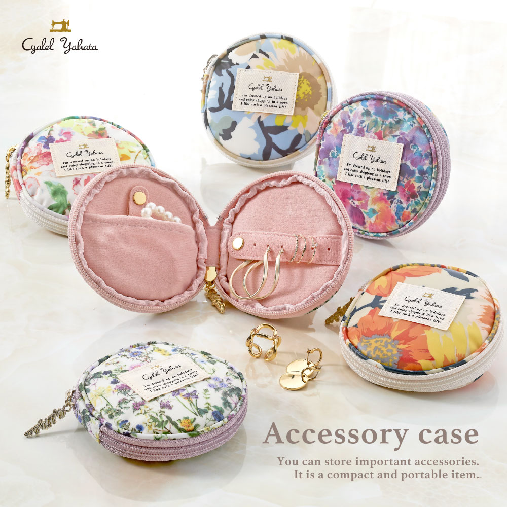 【商品紹介】 ■大切なアクセサリーの持ち運びに コンパクトなサイズでコロンとしたフォルム。 開けると、左面はネックレスやブレスレットを、 ホックを外して挟んで収納ができます。 さらにポケットに入れればキズから守ります。 右面は、ホックを外して穴にピアスを刺して収納。 リングも帯部分にくぐらせれば収納ができます。 大事な結婚指輪を外す時にもなくさず収納ができます。 ■大人かわいい花柄をセレクト バリエーション豊富な花柄を取り揃えています。 ご自身、大切な方のお好きな花柄をチョイスしてくださいね。 ■汚れにくい生地を使用 表生地にはラミネート加工を施しているので、 汚れてもサッと拭き取れ、多少の水なら弾きます。 裏生地はふわふわとした手触り。 スウェード調の裏起毛でアクセサリーをキズから守ります。 さらに生地と生地の間にはウレタンを挟んでよりフワッと。 毎日使うから、汚れにくい生地でお手入れを簡単に。 ■旅行やお出かけに コンパクトなので、毎日の外出はもちろん、レジャーや旅行にも。 旅行先でピアスやリング、ネックレスを外した時の収納に。 急なお出かけの時のために、 アクセサリーを持ち歩きたい方にもおすすめです。 ----------------------------------------- ■ギフトに喜ばれています プレゼント 誕生日 入学 卒業記念品 卒業 成人 就職 受検 就活 転職 婚活 お返し 御返し お祝い返し 返礼品 御礼 お礼 出産祝い 誕生日プレゼント 誕生日祝い 婚約 結婚記念日 結婚祝い 結婚式 二次会 披露宴御祝 結婚式 結婚祝い 記念日 法人ギフト イベント 御祝 退職祝い ゴルフコンペ ギフト ■こんなシーンにおすすめです クリスマス バレンタインデー valentine's day 母の日 ホワイトデー ホワイトデイ White Day 忘年会 新年会 二次会 送別会 転勤 ひな祭り こどもの日 女子会 パーティ クリスマス クリスマスプレゼント クリスマス会 Christmas Xmas X'mas ■こんな方におすすめです 友達 彼女 親友 ママ友 お母さん お姉ちゃん 妹 奥さん お嫁さん 職場 部下 先輩 後輩 同僚 女友達 母 義母 ■年代 10代 20代 30代 40代 50代 60代 学生 高校生 大学生 専門学生 社会人 子供 大人 ----------------------------------------- <素材> ●原産国:日本 ●表地:綿(ビニールラミネート加工) ●裏地:スウェード調起毛生地 / ポリエステル 中側:中わた:ウレタン ●サイズ(約):本体 タテ:11cm ヨコ:11cm マチ:2.2cm ●重さ(約):45g ※すべて手作りのため、サイズ・柄に若干の誤差があります。 <仕様> ●開口部:ファスナー式 ●内側:ピアスフック×6・オープンポケット×1 ※写真の色と実物の色・柄は、多少異なる場合がありますので予めご了承下さい。