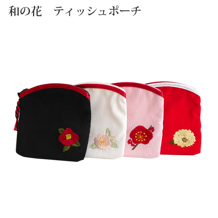 【ポーチ】ティッシュポーチ ティッシュ アクセサリー 印鑑 ハンコ ピアス イヤリング ケース アクセサリーケース 花柄 刺繍 小銭入れ 小銭 コインケース リップ グロス フラワー 浴衣 和雑貨 和柄 小物入れ ファスナー がま口