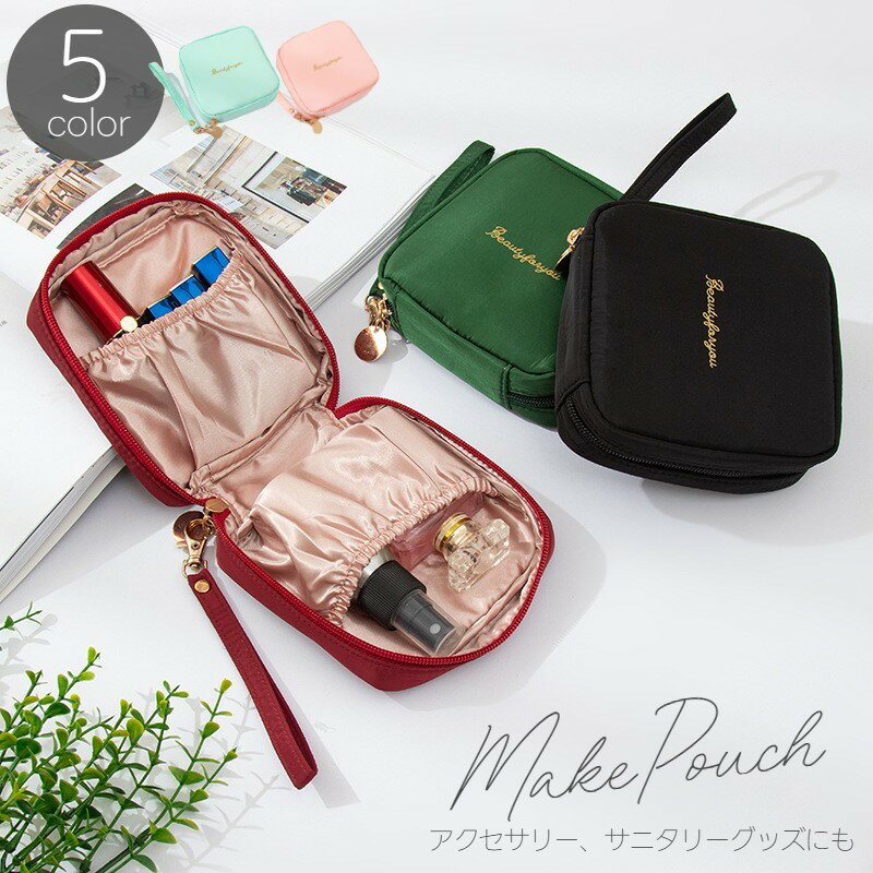 送料無料 化粧ポーチ コスメポーチ 小物入れ サニタリー ナプキン アクセサリー 仕切り ピアス イヤリング メイクポーチ スリム コンパクト 収納力 レディース 女性 婦人 スクエア 正方形 ファスナー ジッパー かわいい おしゃれ 収納 四角 ロゴ シンプル 大人 女子 ブラック