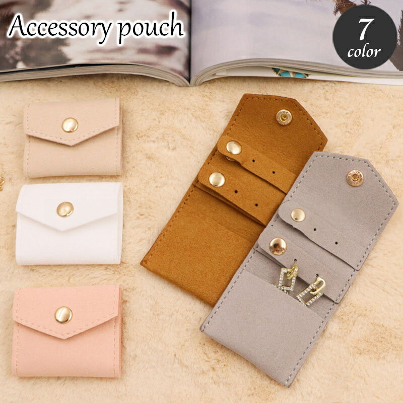 送料無料 アクセサリーポーチ ジュエリーポーチ 単品 1個 レザー調 コンパクト 小さめ ミニ 薄型 ボタン 持ち運び 携帯 ピアス イヤリング ネックレス 指輪 トラベル 旅行 おでかけ レディース 女性 婦人