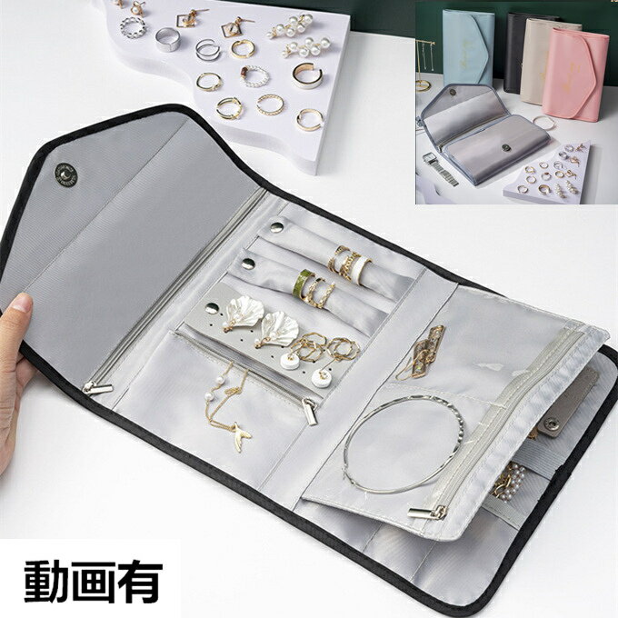 送料無料 アクセサリーポーチ ジュエリーポーチ レザー調 持ち運び 携帯 ポータブル リング ピアス イヤリング ネックレス 小物入れ おしゃれ かわいい 内部ベルト付き 整理 収納 分類 お出かけ 旅行 トラベル 大人上品