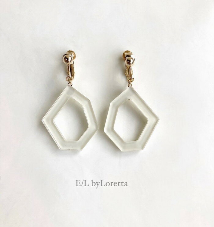 Color KAKERA hoop pierce/earring(Ivory) アクセサリー ピアス イヤリング フープ アイボリー ホワイト 白 レディース 女性 両耳 きれいめ 大人かわいい ハンドメイド 手作り チタン 樹脂 14kgf ネジ式 クリップ式 エルバイロレッタ E/L byLoretta EL