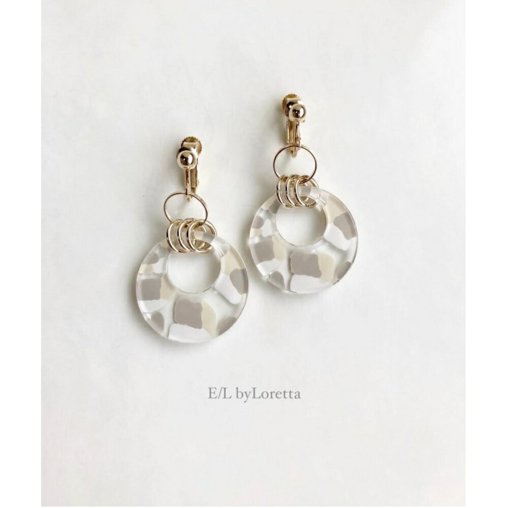 Art mix color w ring pierce/earring(Ivory Mix) [cc] アクセサリー ピアス イヤリング リング フープ アイボリー 白 クリア 透明 レディース 女性 大人かわいい ハンドメイド チタン 樹脂 14kgf ネジ式 クリップ式 エルバイロレッタ E/L byLoretta EL