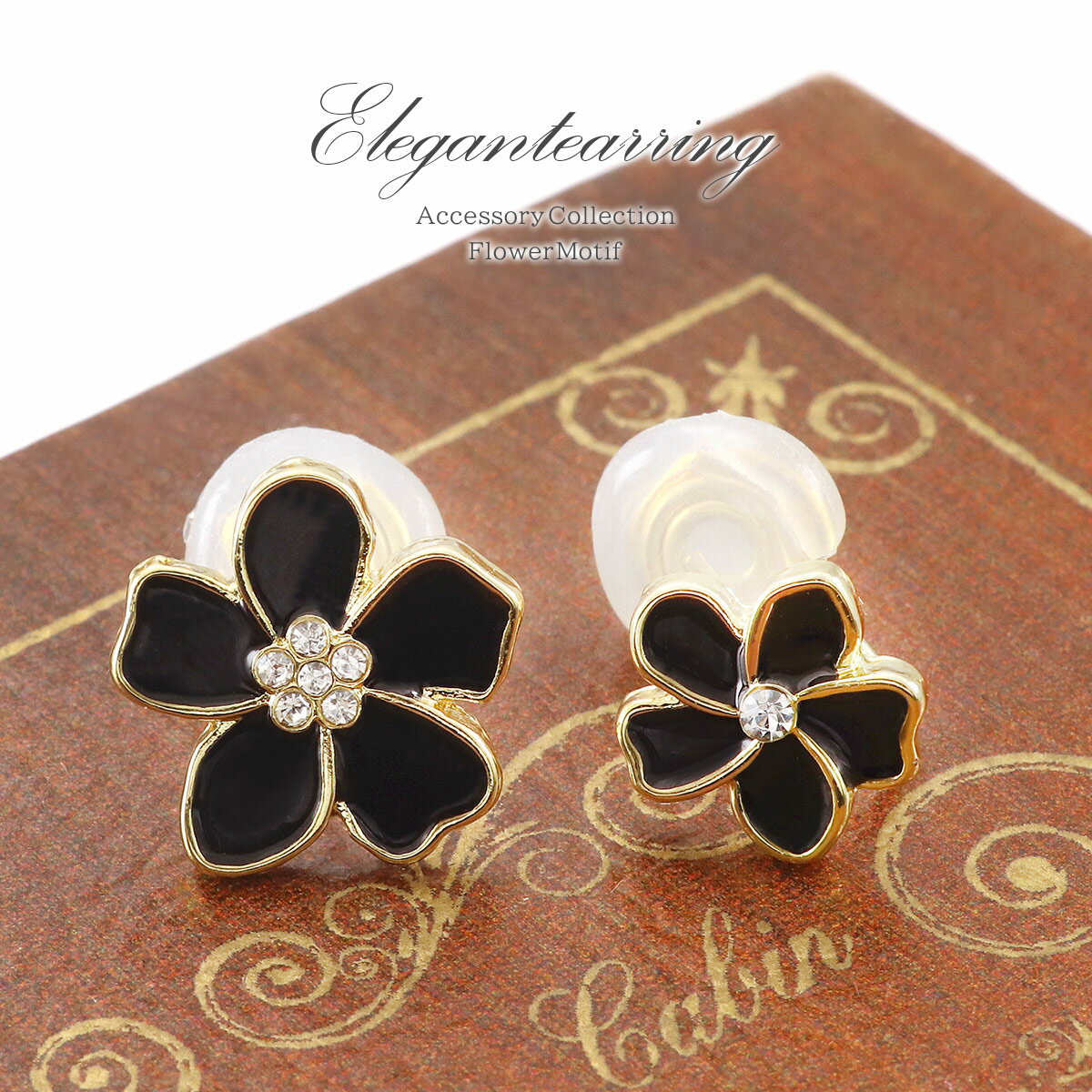 イヤリング クリップ式 フラワー モチーフ レディース ブラック ゴールド 可愛い エレガント 大人 おしゃれ クリップイヤリング ノンホール アシンメトリー 個性的 普段使い 高見え 20代 30代 40代 Ladies かわいい 楽天 通販 花 ブラック 黒い花 黒色 [ 20代 30代 40代 ]
