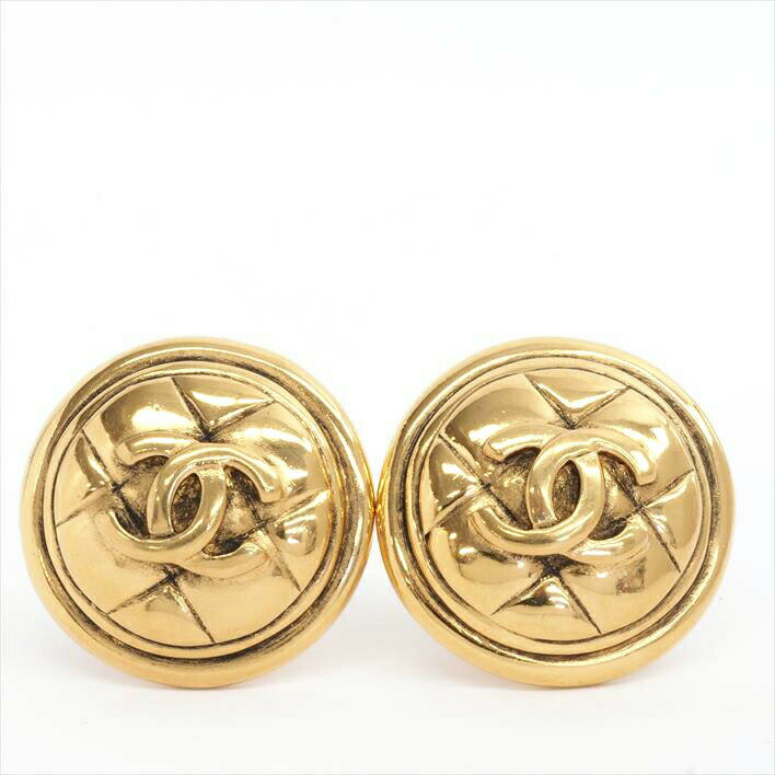 【スーパーSALE限定価格】【返品OK】シャネル コマーク マトラッセテクスチャー ラウンド ゴールドカラー クリップタイプ【イヤリング】