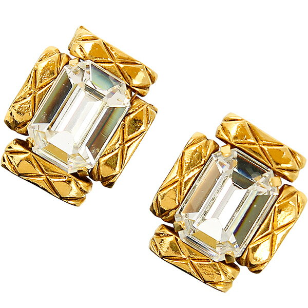 シャネル イヤリング ラインストーン マトラッセ ヴィンテージ GP ゴールド CHANEL レディース カラーストーン アクセサリー ブランド VINTAGE Earrings 美品 中古