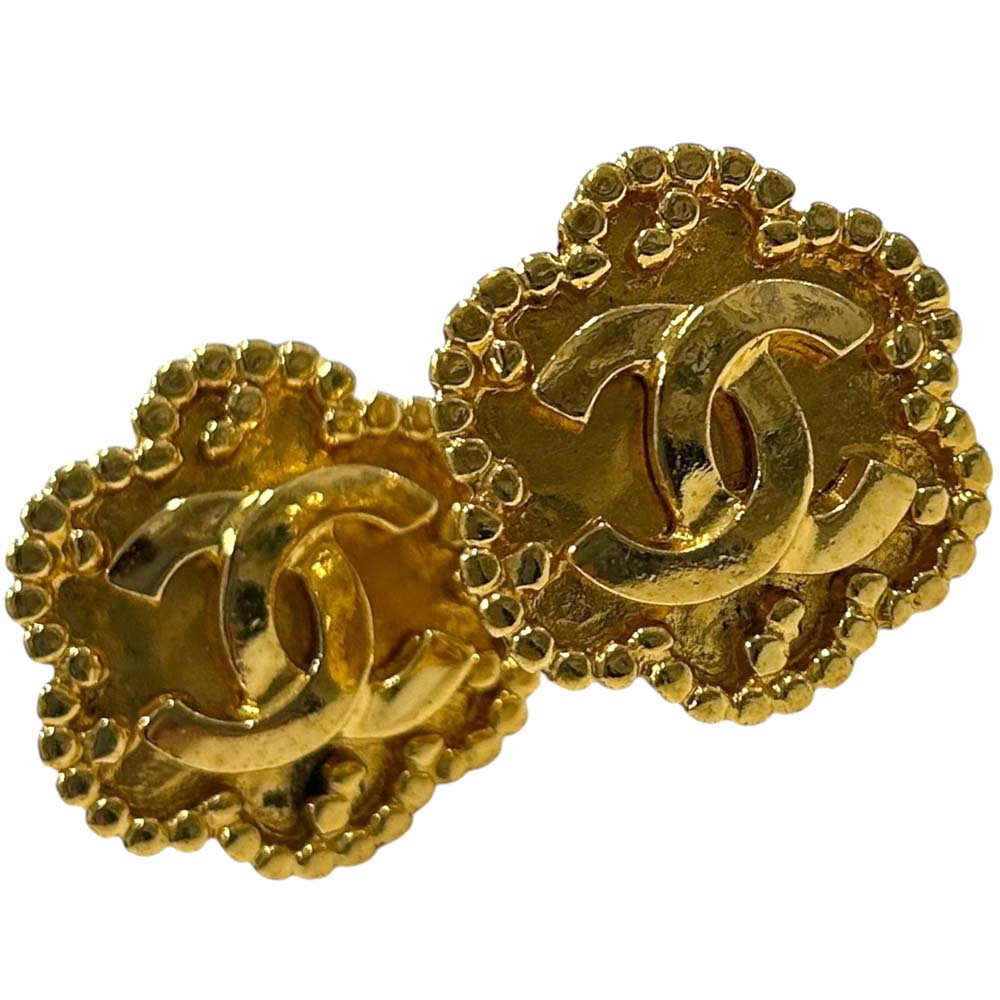 【ヴィンテージ】 シャネル イヤリング クローバーモチーフ ココマーク メタル ゴールド GP CHANEL シャネル クローバーイヤリング レディース ココマークイヤリング ロゴイヤリング アクセサリー Earrings Vintageブランド 美品 中古