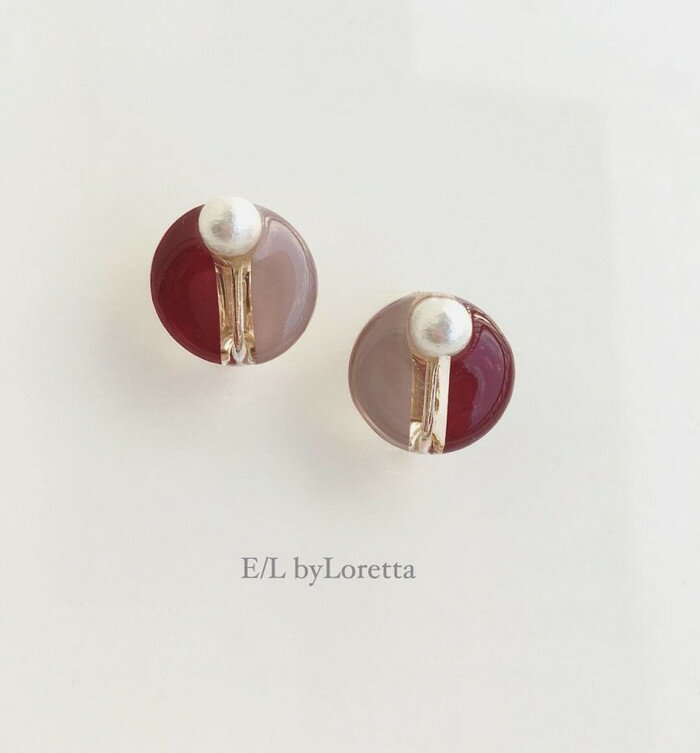 Circle bi-color Pearl pierce/earring(Bordeaux) E/L byLoretta EL エルバイロレッタ accessory アクセサリー サークル バイカラー ボルドー ワインレッド ベージュ ピアス イヤリング チタン ねじ式 樹脂 クリップ式 両耳セット ハンドメイド