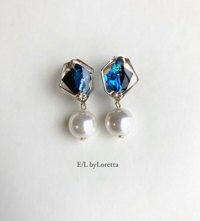 Shell art pearl pierce/earring E/L byLoretta EL エルバイロレッタ accessory アクセサリー 貝殻風 シェル パール クリア ブルー 青 ブラック 黒 ピアス イヤリング チタン 樹脂 ねじ式 クリップ式 両耳セット ハンドメイド お洒落 選べる